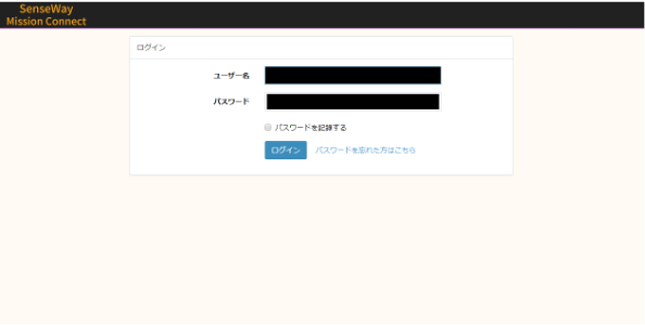 センスウェイミッションコネクトの管理コンソールにログインします。